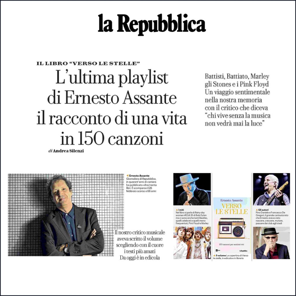 «Questo è un libro che non ha un vero e proprio inizio e non ha, quindi, neanche una vera e propria fine. Perché si tratta di una sorta di grande playlist, senza ordine e grado, composta da 150 canzoni che possono, in qualche caso devono, far parte della vostra esistenza. 150 canzoni sono poche, pochissime, stelle brillanti nell’infinito musicale planetario ma perse nel cosmo di quello che meriterebbe di essere ascoltato. Ma 150 sono abbastanza, in realtà, se provate a considerare la lettura di questo libro come la consultazione del catalogo di una mostra, o della collezione di un museo. Come in una mostra ho scelto alcuni brani che possono, ognuno per il proprio specifico motivo, colpire la vostra curiosità. Ne avrei potuti scegliere altrettanti, o dieci volte tanti, questa non è una lista del “meglio”, nemmeno l’elenco delle mie “canzoni preferite”, neanche di quelle che conosco di più. È una “mostra sull’arte della canzone” e sulle sue infinite declinazioni, su come questi brani possano essere parte di una storia più grande, addirittura quella dell’umanità, e di storie piccine e insignificanti, rispetto al grande gioco dell’universo, come le nostre».