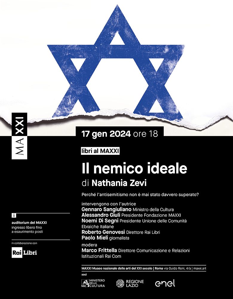 Mercoledì 17 gennaio alle ore 18 Nathania Zevi presenterà “Il nemico ideale” (Rai Libri) nel corso dell’incontro in programma al MAXXI di Roma (Via Guido Reni 4/a).
