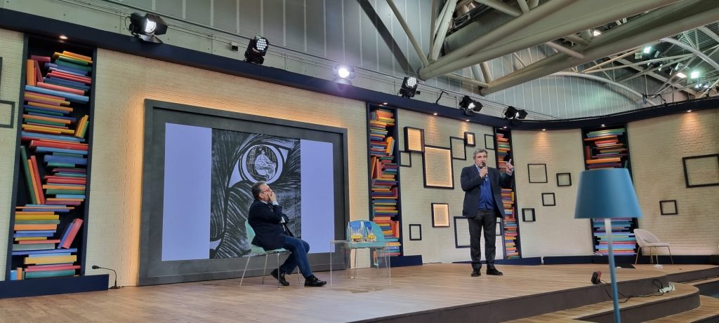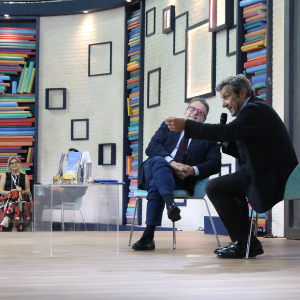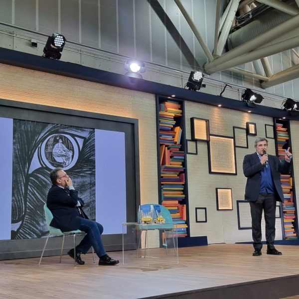 Al Salone Internazionale del Libro Flavio Insinna presenta “Il gatto del papa” con Marco Frittella, direttore di Rai Libri