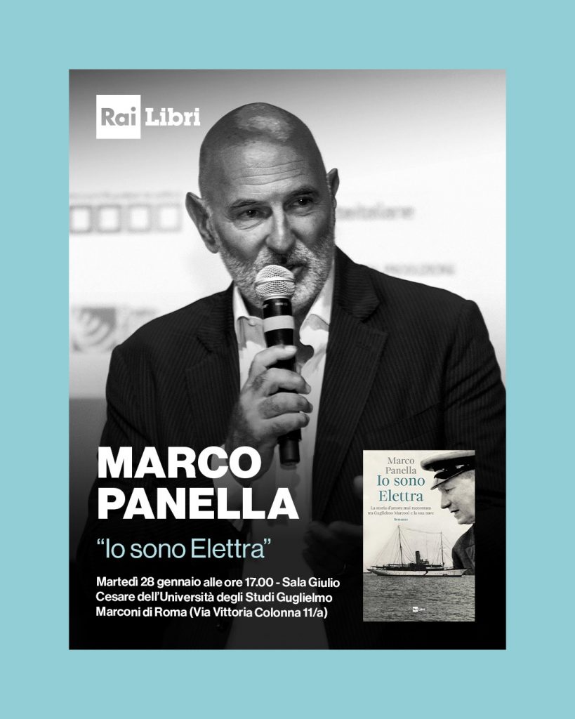 Martedì 28 gennaio alle ore 17.00 la Sala Giulio Cesare dell’Università degli Studi Guglielmo Marconi di Roma (Via Vittoria Colonna 11/a), ospiterà la presentazione del volume “Io sono Elettra. La storia d’amore mai raccontata tra Guglielmo Marconi e la sua nave” (Rai Libri). All’incontro con l’autore interverrà Guglielmo Giovanelli Marconi, nipote del grande scienziato e inventore. Il romanzo di Marco Panella accende una luce su una relazione inedita, intima e profonda tra l’inventore della radio e il panfilo Elettra, la sua amata compagna di viaggio e sperimentazione. Dalla costa livornese fino alle traversate oceaniche, Panella racconta la passione di Marconi per il mare e il suo legame speciale con la nave Elettra, da lui rinominata e trasformata in uno strumento di ricerca e innovazione.