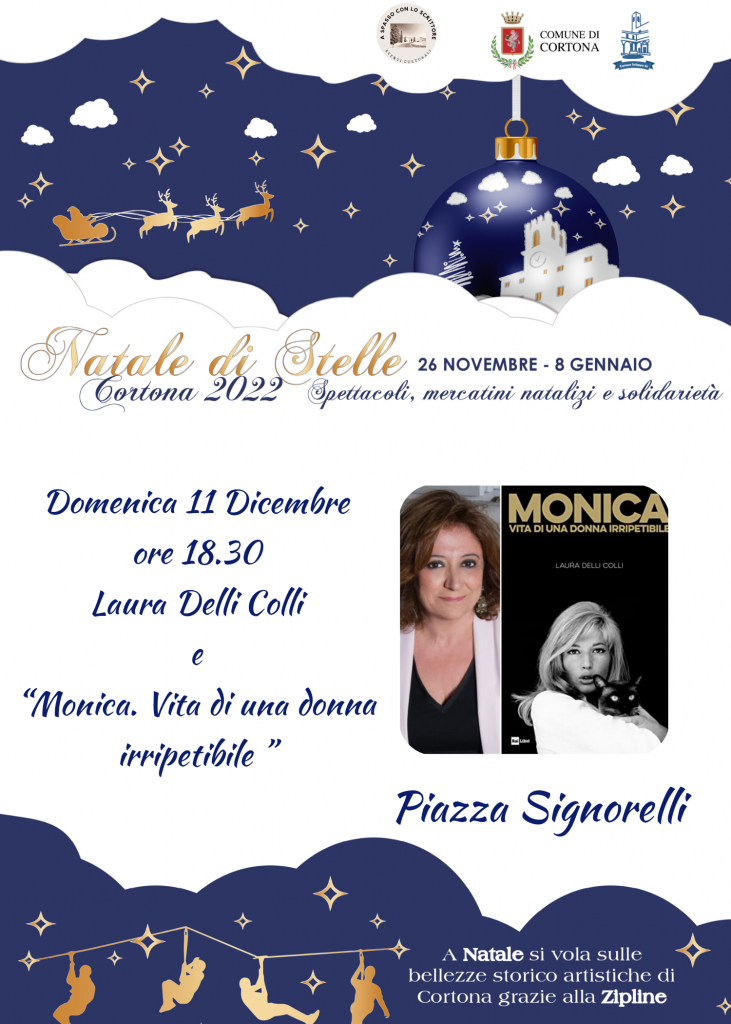 I film, i premi e l’apprezzamento del pubblico, ma anche le risate, gli amori e le passioni. Laura Delli Colli racconta Monica Vitti, protagonista di pellicole indimenticabili e icona del nostro cinema. La presentazione di “Monica. Vita di una donna irripetibile” (Rai Libri) avverrà domenica 11 dicembre alle 18.30 all’interno del Crystal in Piazza Signorelli a Cortona (AR).