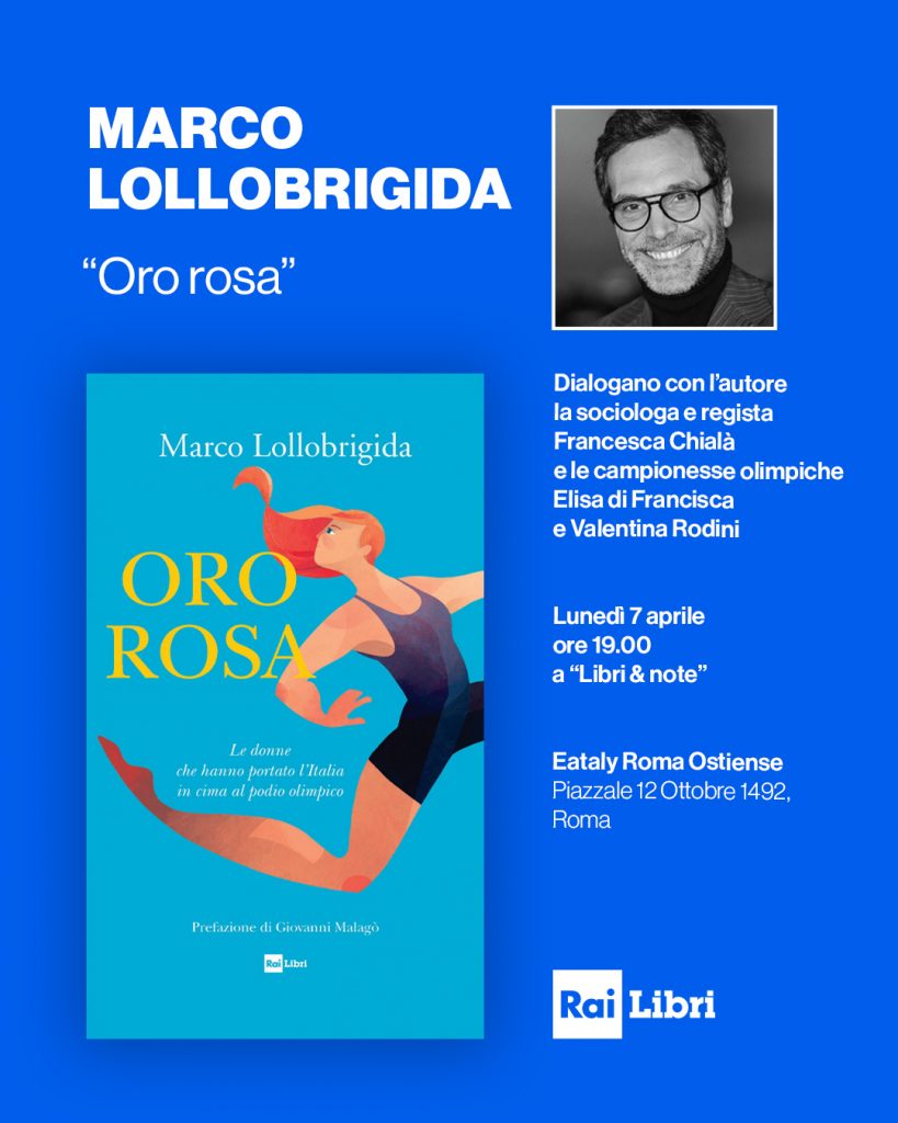 Lunedì 7 aprile, alle ore 19.00, Marco Lollobrigida presenta “Oro rosa – Le donne che hanno portato l’Italia in cima al podio olimpico” (Rai libri). All’evento, ospitato dalla rassegna “Libri & note” presso Eataly Roma Ostiense prendono parte, insieme all’autore, la sociologa e regista Francesca Chialà e la campionessa olimpica Elisa Di Francisca. Ventidue storie di sport e di vita, quelle raccontate da Marco Lollobrigida, un viaggio lungo quasi cento anni che attraversa i successi e le emozioni di campionesse del calibro della libellula azzurra Sara Simeoni, che conquistò Mosca nel 1980, di Gabriella Dorio, che fece sognare Los Angeles solo quattro anni più tardi, di Federica Pellegrini, regina assoluta a Pechino nel 2008. Il libro racconta l’evoluzione della figura femminile nella storia delle Olimpiadi, tra sogni e sacrifici, traguardi sportivi e importanti scelte di vita. Evento gratuito prenotabile dal sito di Eataly Roma Ostiense.