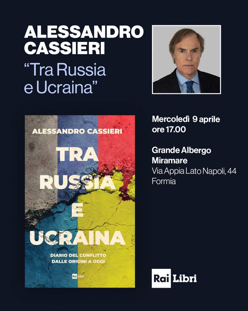 Mercoledì 9 aprile alle ore 17.00 Alessandro Cassieri presenta “Tra Russia e Ucraina. Diario del conflitto dalle origini a oggi” (Rai Libri) al Grande Albergo Miramare di Formia. Il volume è un racconto intenso e avventuroso in prima persona, che vede l’autore attraversare decine di volte un confine, di anno in anno sempre più armato, spingendosi anche in Ossezia e Georgia, Crimea e Donbass, Kirghizistan e Afghanistan, America e Cina. Un libro che dà al lettore strumenti fondamentali per capire le ragioni di un conflitto che segna drammaticamente i nostri giorni.